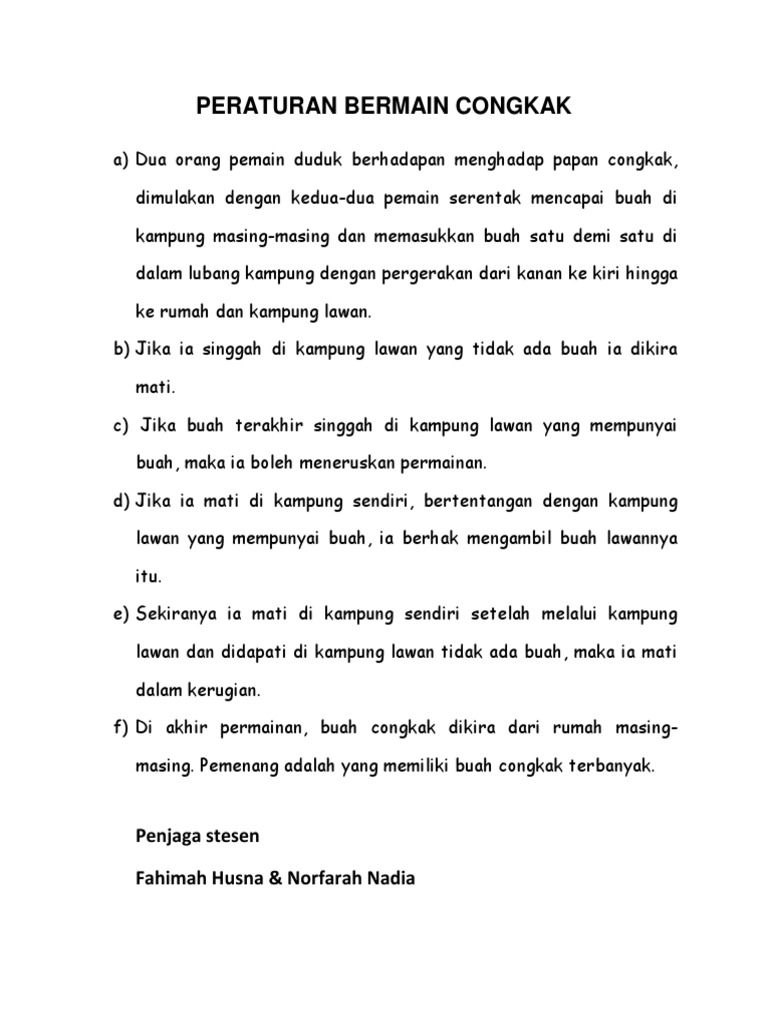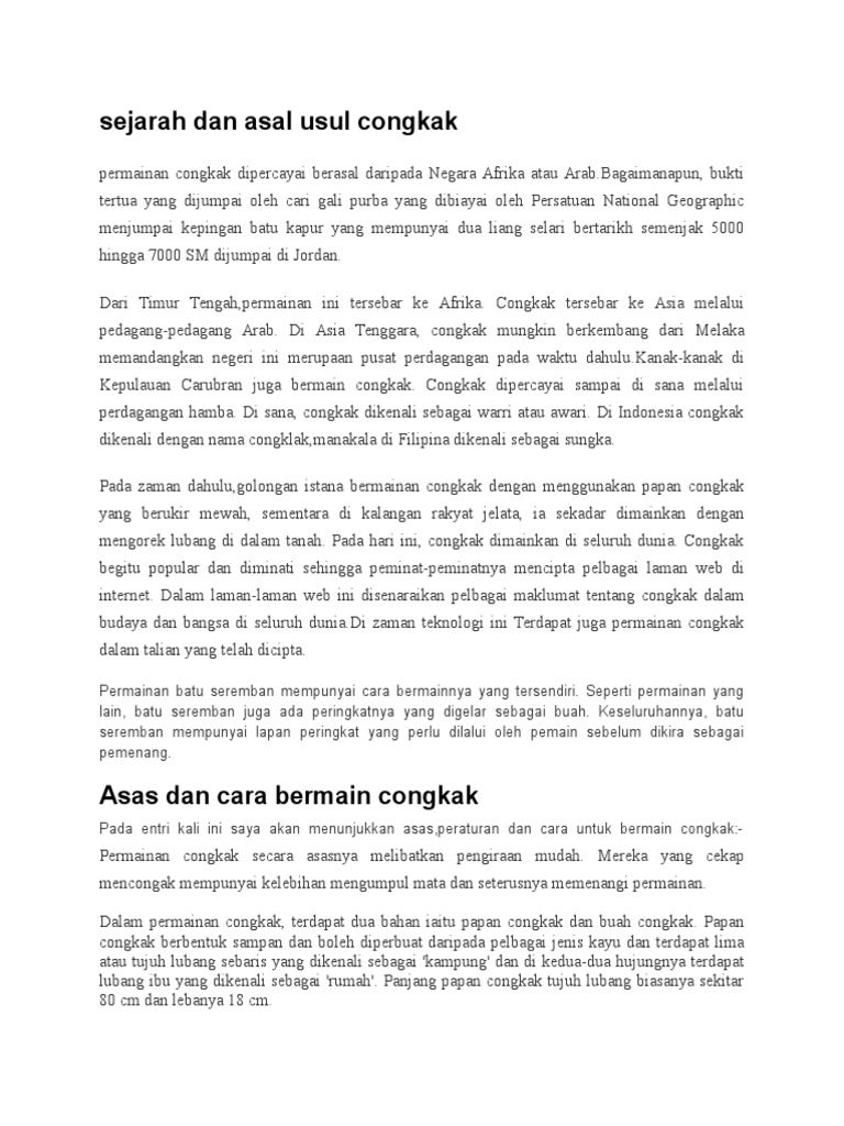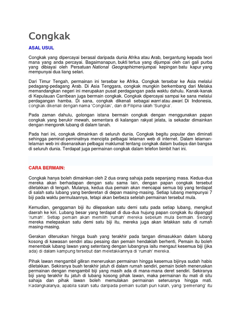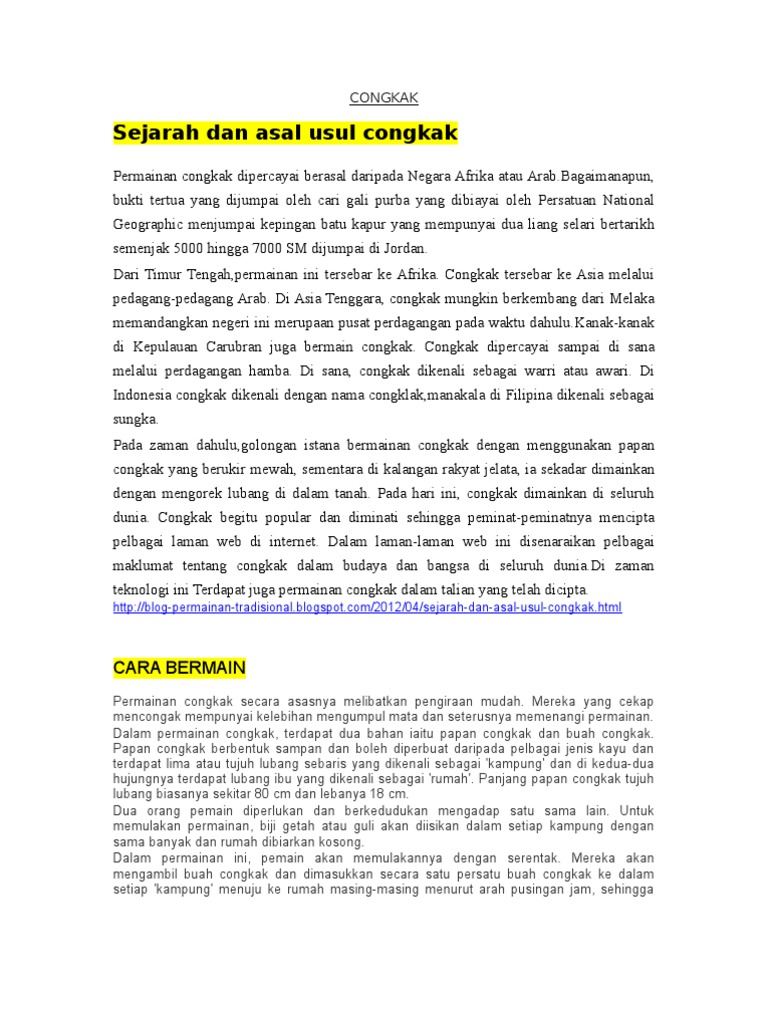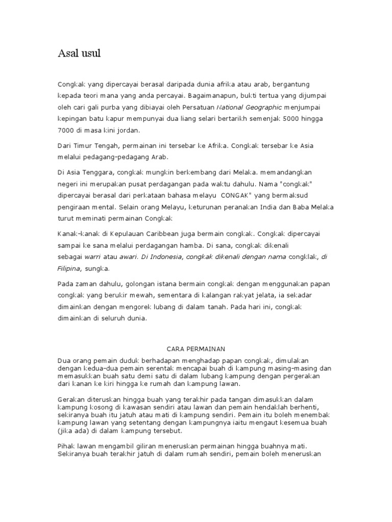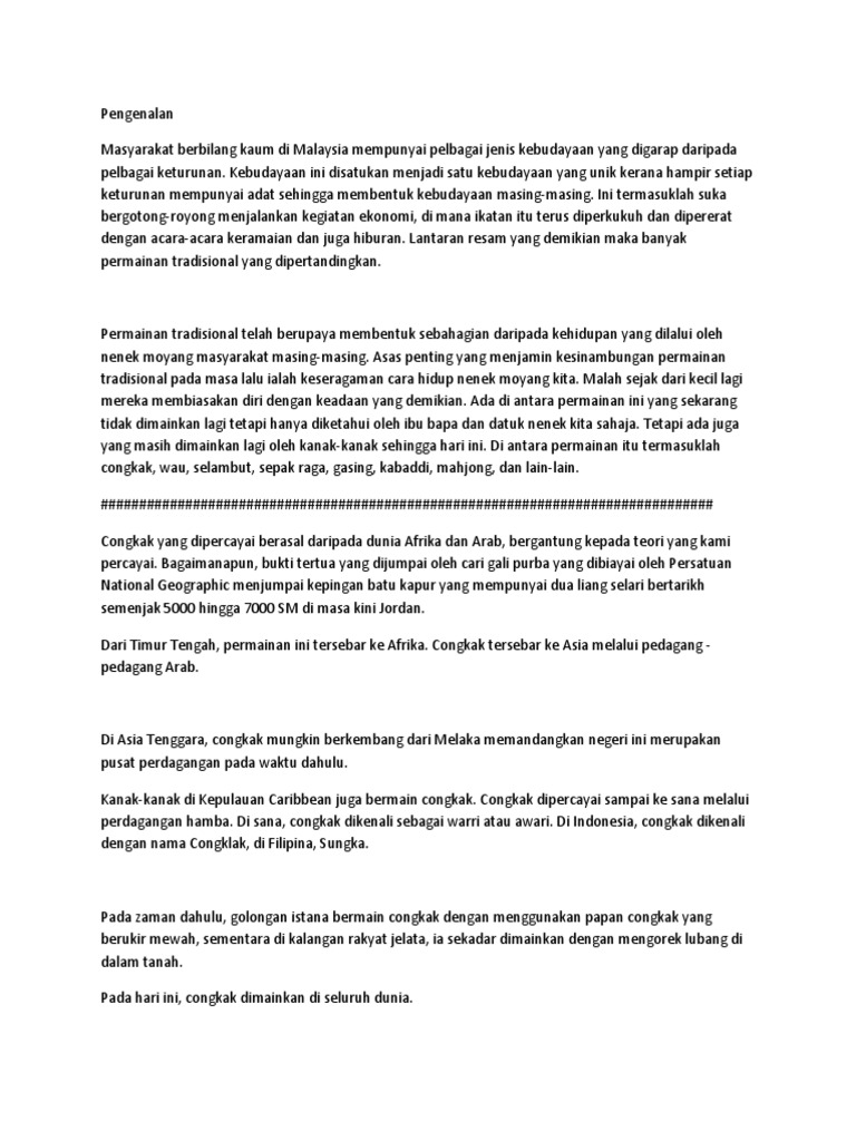 Congkak Karangan Permainan Tradisional Congkak Pdf