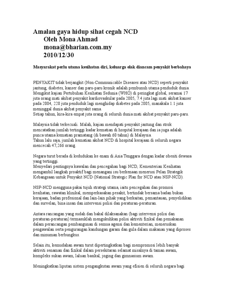 Amalan Gaya Hidup Sihat Cegah Ncd 1 Pdf